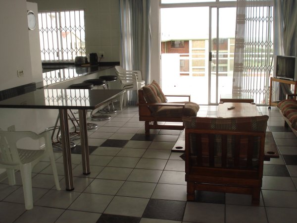 1st floor Unit, close to St. Michael’s beach, 3 bedrooms,1 double bed in main bedroom, 2nd bedroom with 2 single beds & 3rd bedroom with 2 single beds. 2 Bathrooms with bath in on-suite and bath & shower in 2nd bathroom. Lounge with TV, DSTV (bring own decoder & smart card). Open plan kitchen with breakfast counter. Lovely balcony overlooking the ocean with braai. Under cover parking behind electrical fence. Approx 200m from main swimming beach.